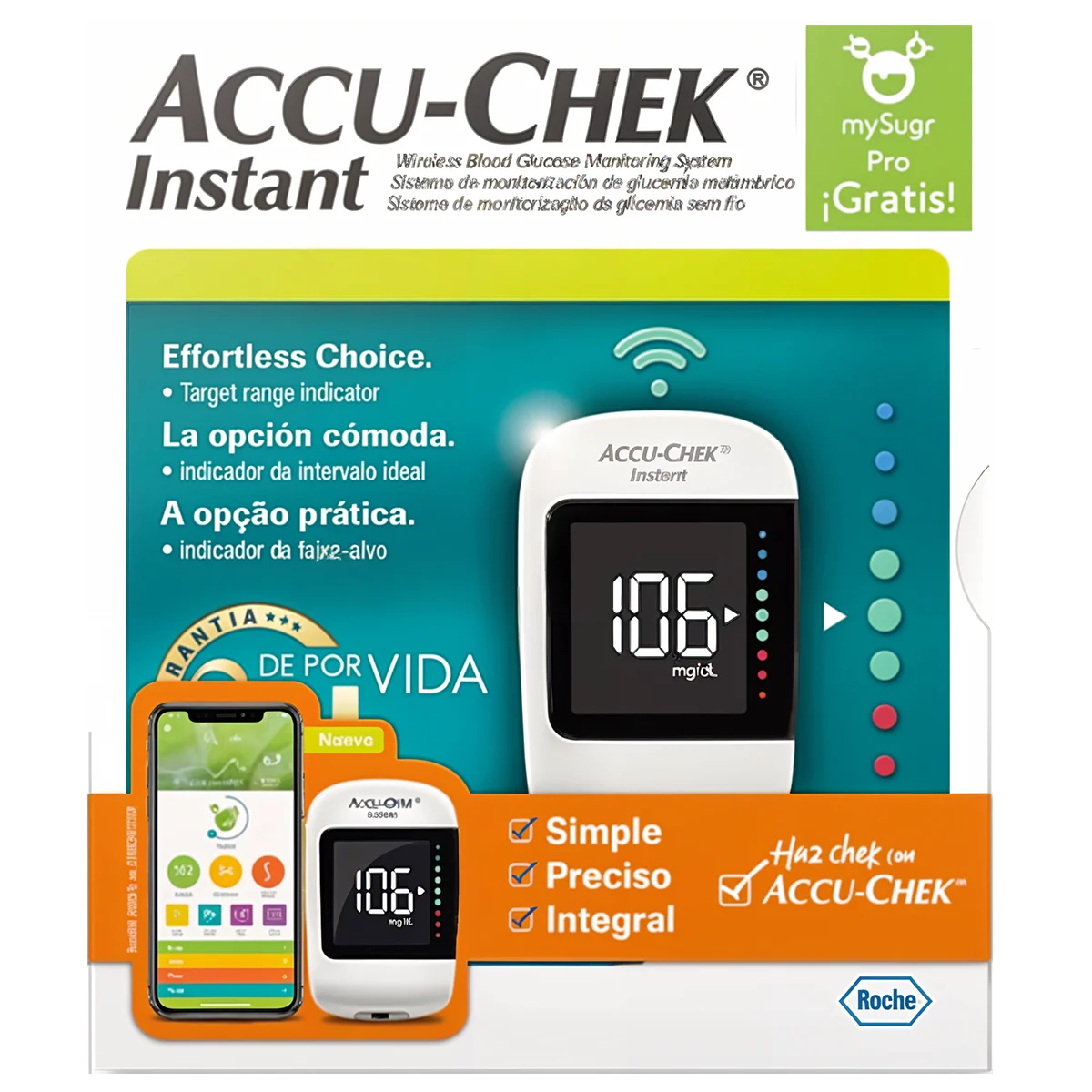 Kit Glucómetro Instant Roche – 120 Resultados, 5 Segundos por Resultado, Diseño Moderno