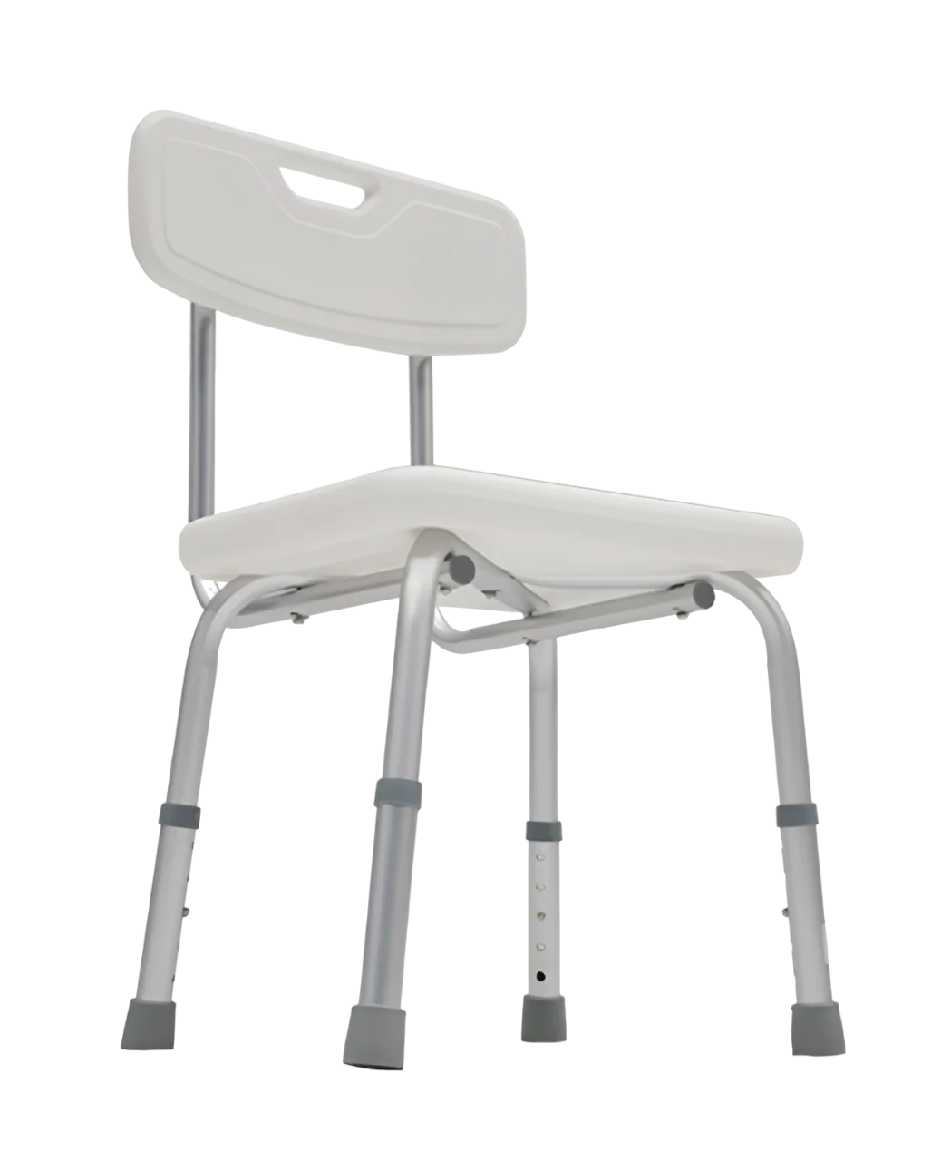 Patas Ajustables: Las patas de la silla son ajustables en altura para adaptarse a diferentes tamaños de bañeras y duchas, proporcionando versatilidad en su uso.