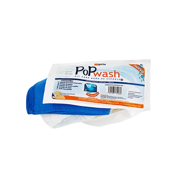 Contenido: Esponjas prehumedecidas, toallas secas, guantes de baño