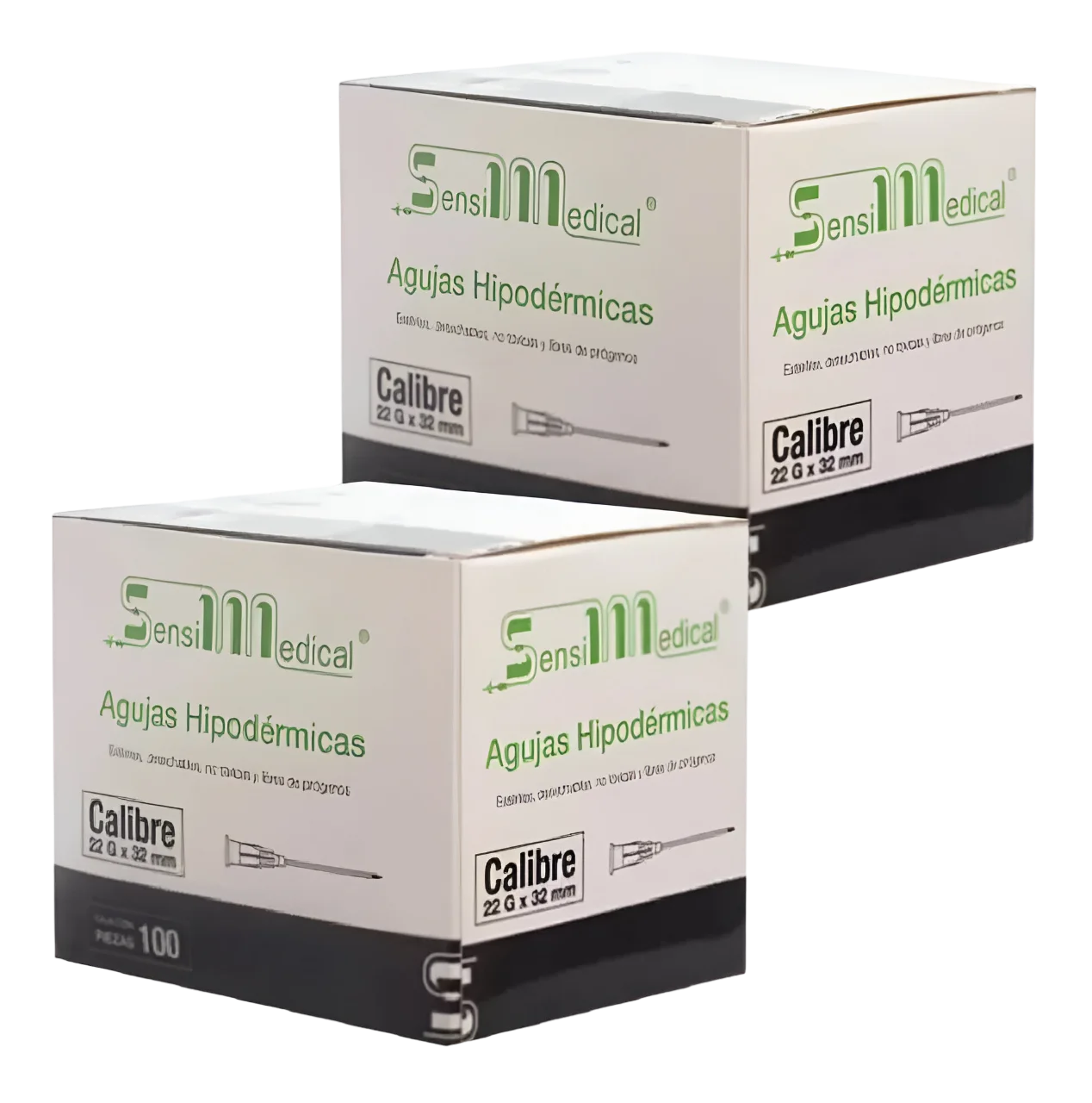 Aguja hipodérmica desechable, aguja 22Gx32mm, aguja negra, aguja para inyección, agujas Sensi Medical, aguja desechable 100 piezas, aguja subcutánea.