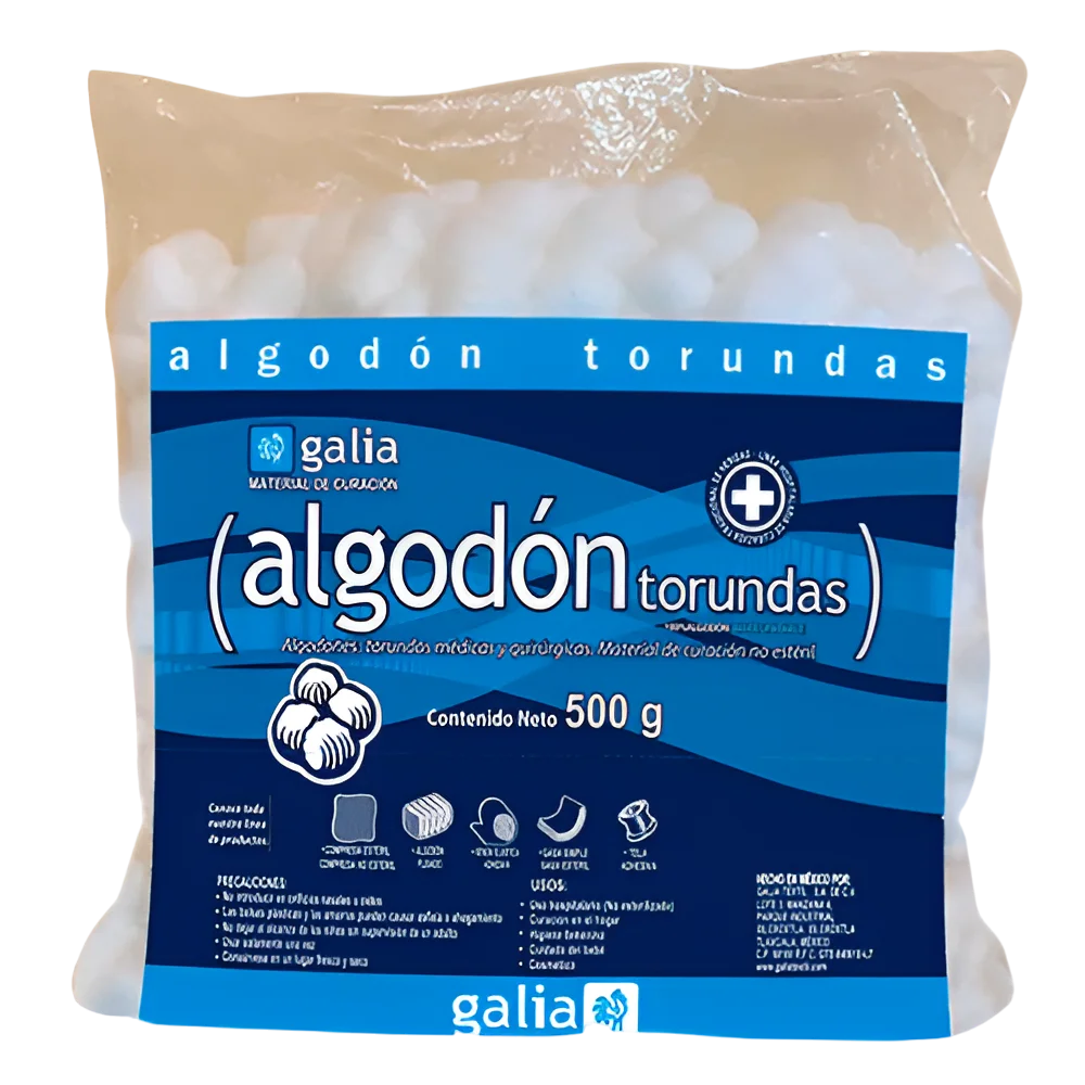El Algodón Torunda es una forma versátil y útil de algodón, ideal para aplicaciones médicas y de cuidado personal. Ofrecido en una bolsa de 500 gramos, este algodón es adecuado para la limpieza, desinfección y aplicación de productos en diversas áreas del cuerpo.