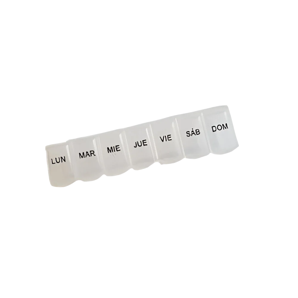 - Diseño Semanal: Incluye 7 compartimentos claramente marcados con los días de la semana, permitiendo una organización sencilla de las medicinas diarias.